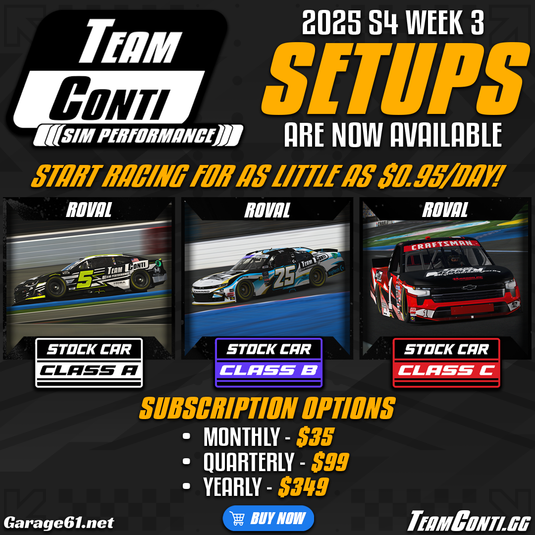 Grab your Team Conti Sim Performance setup pack for this year's iRacing Firecracker 400 and hit the track with a chance to contend!